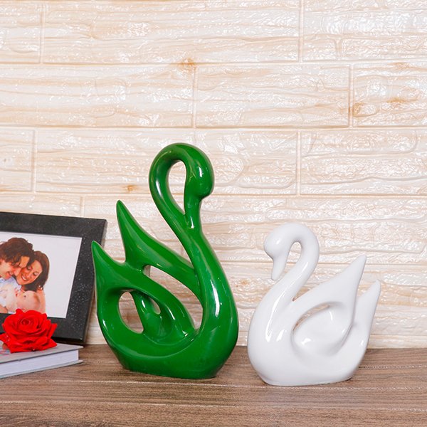 Lucky Swan Couple Showpiece for Home Decor (Green & Red) Polyresin – 10 Inch