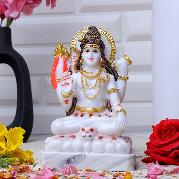 Lord Shiva Idol Showpiece (White) Marble – 6 Inch